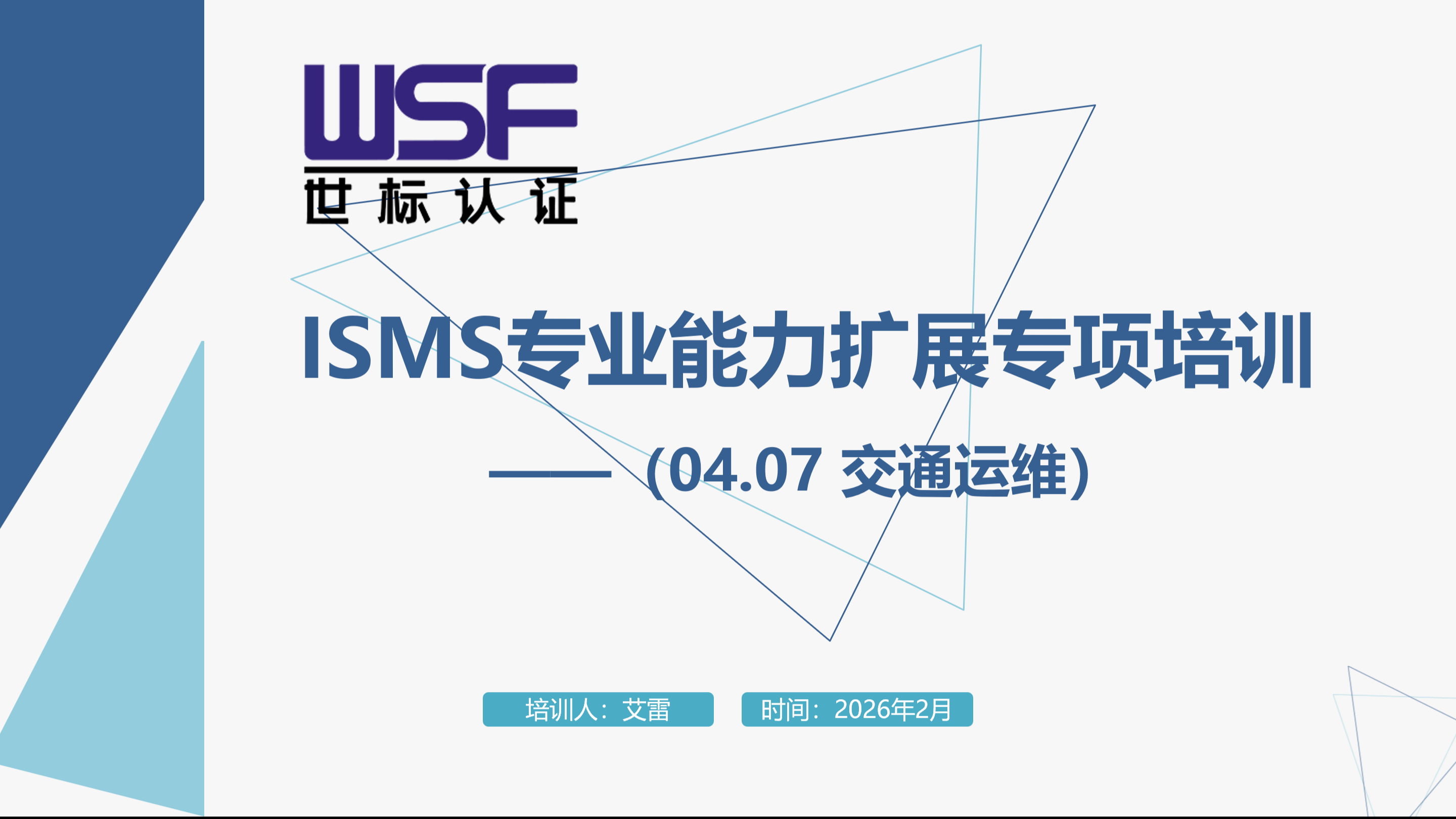 • 世標認證/WSF舉辦信息技術安全管理體系(交通運輸)專業領域培訓,助力業務發展